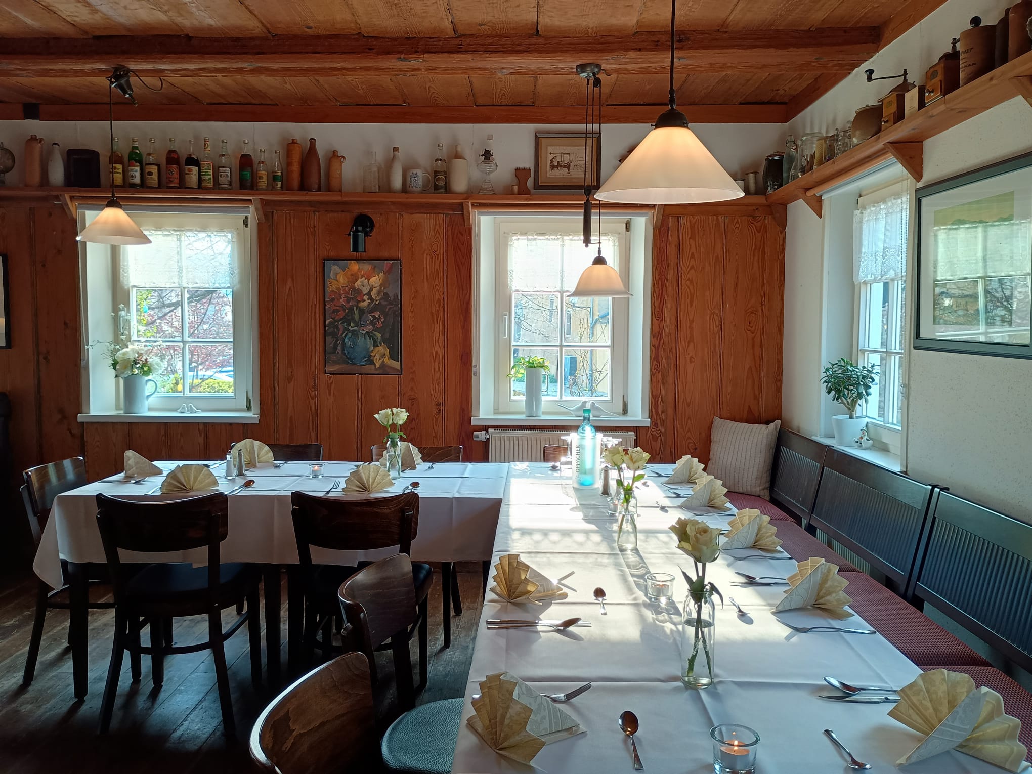Die sogenannte „gute Stube“ grenzt an die Blockstube und bietet einen abgetrennten, ruhigen Raum für max. 21 Personen.