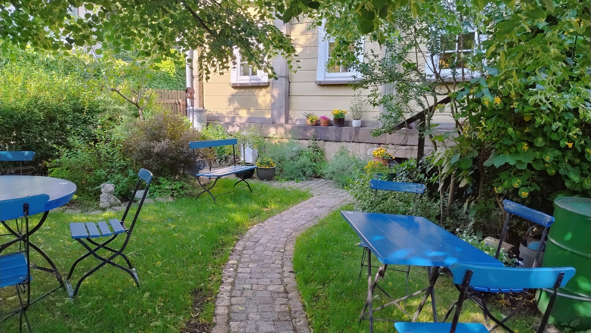 Der alte Lindenbaum beschattet unseren kleinen Biergarten auf natürliche Weise. Das beruhigende Rauschen des Blattwerkes vermittelt den Gästen ein Gefühl der Geborgenheit.